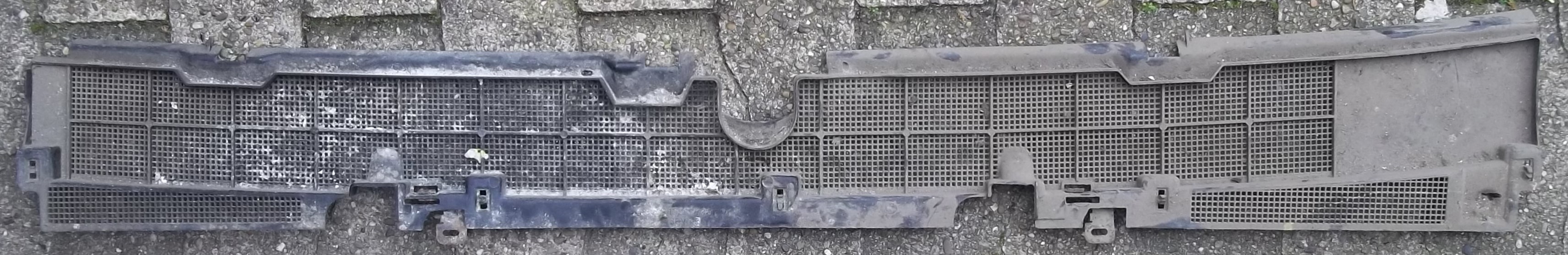 Gebrauchtes Lüftungsgitter vor der Frontscheibe.